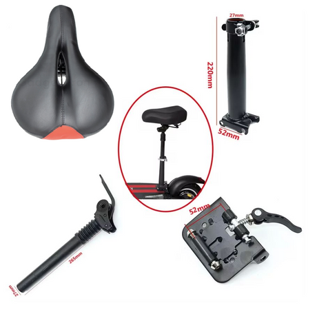 Seat Kit with Seat post for Kugoo M4/M4 Pro - Height Adjustable Saddle Set Red & Black